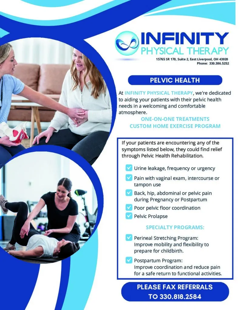 Our physical therapy clinics in Boardman and East Liverpool, OH are fully prepared to diagnose and treat all forms of pelvic discomfort.
